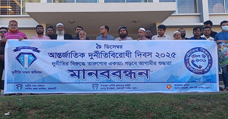 লংগদুতে আন্তর্জাতিক দুর্নীতি বিরোধী দিবসে মানববন্ধন